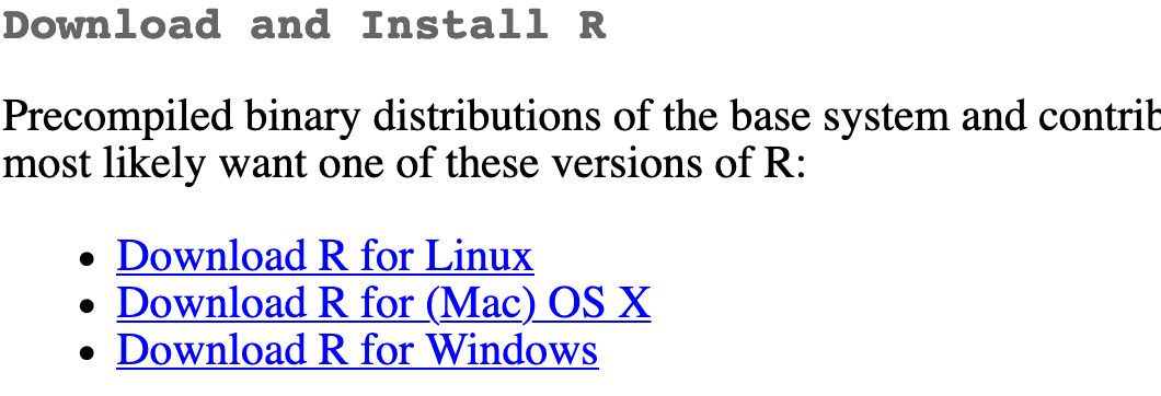 Go to the CRAN (Collective R Archive Network)1 website: https://cran.r-project.org/