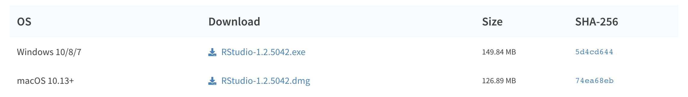 ::: :::If not, scroll down a little to the large table and choose the version of RStudio that matches your operating system.
