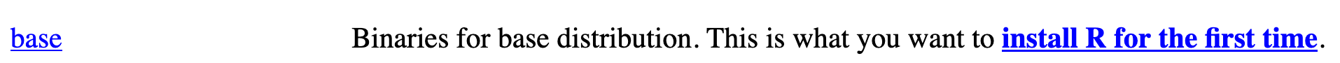 ::: :::If you use Windows, click “base” (or click on the bolded “install R for the first time” link) and download it.