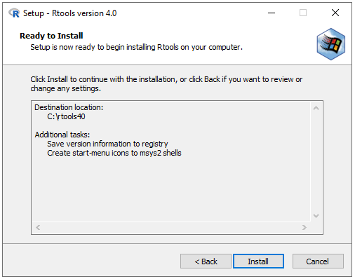 Solo se instala Rtools