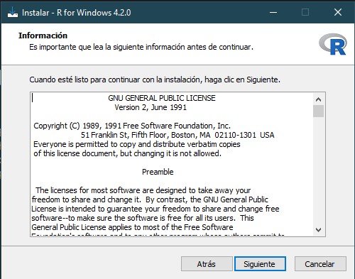 Si desea más información sobre cómo instalar estos programas en Windows y/o MAC, visite la página oficial del proyecto R.