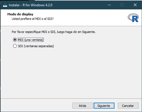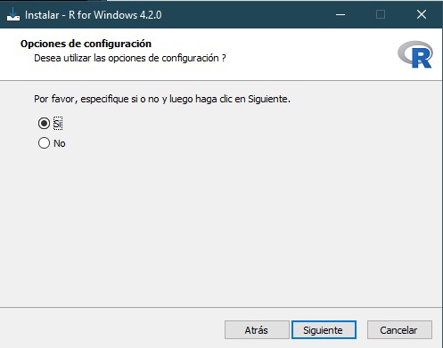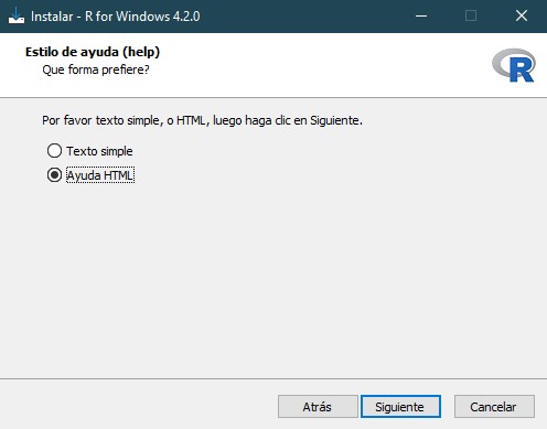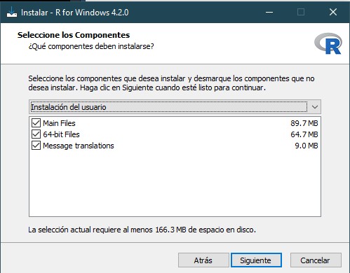 Una vez descargado el programa, el primer paso es escoger el idioma del asistente de instalación de R.