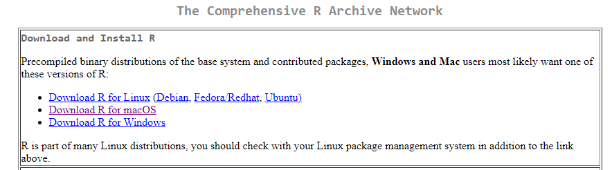 Para la instalación de R y Rstudio en otros sistemas operativos, como macOS y Linux, vamos a la página oficial de R project y seguimos las mismas indicaciones.