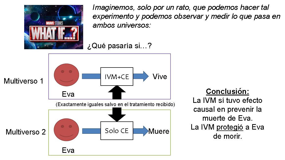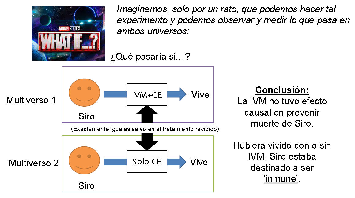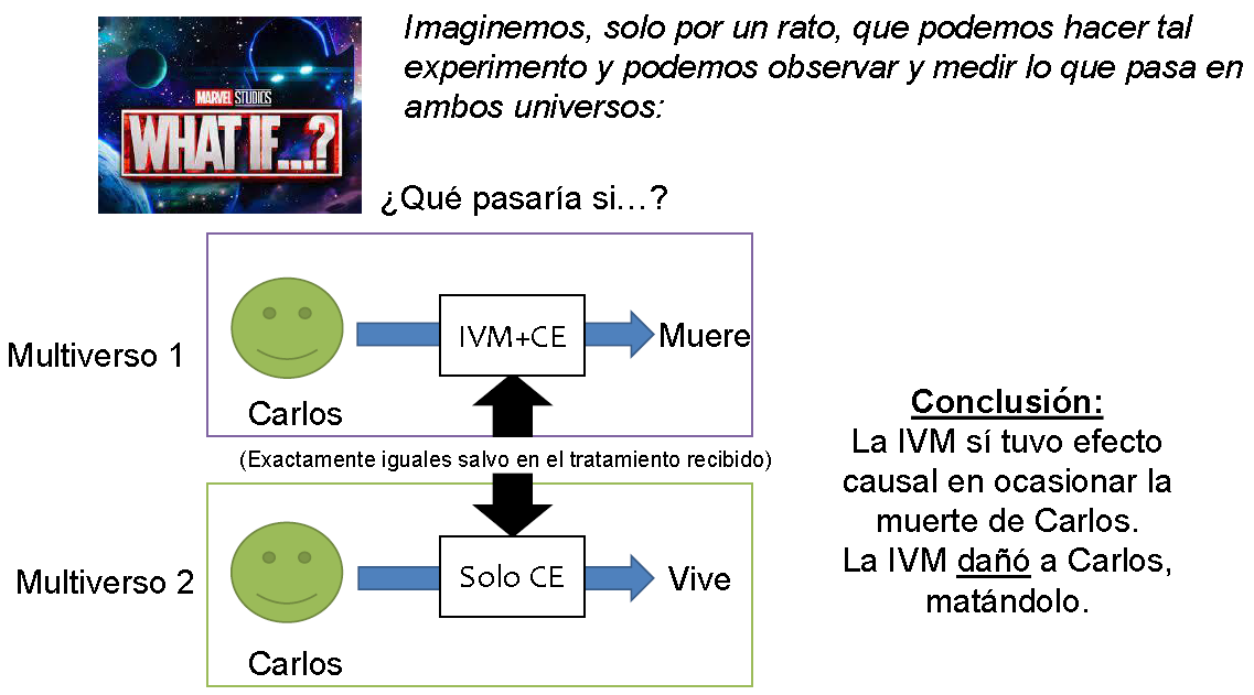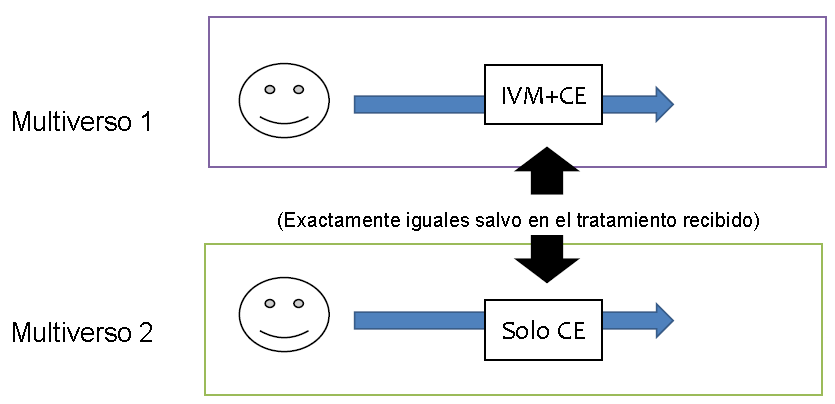 • No en nuestra realidad, pero sí podemos imaginar el experimento (mental) que compare resultados potenciales de mundos contrafactuales.