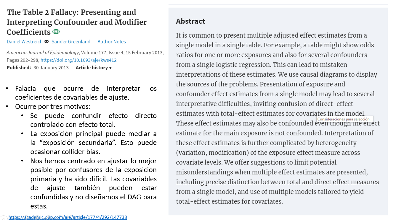 Falacia que ocurre de interpretar los coeficientes de regresión de las variables confusoras.